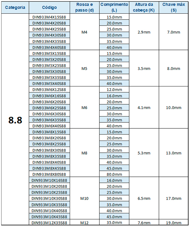 Disponível nas roscas: M5, M6, M8, M10, M12