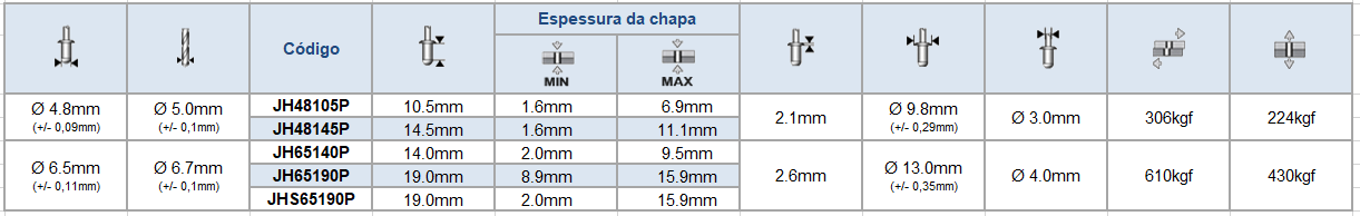 Rebites • Rebitadeiras • Pinos de Solda • Auto Cravantes • Porca Tubo • Inserto Auto Cortante • Porca Gaiola