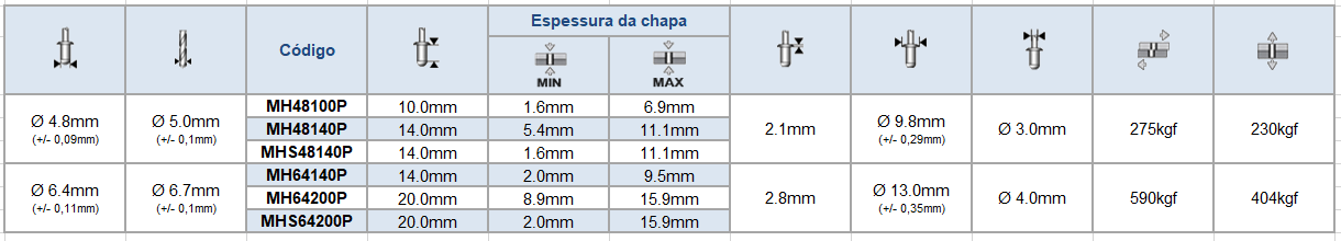 Rebites • Rebitadeiras • Pinos de Solda • Auto Cravantes • Porca Tubo • Inserto Auto Cortante • Porca Gaiola